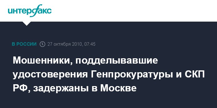 Мошенники, подделывавшие удостоверения Генпрокуратуры и СКП РФ, задержаны в Москве