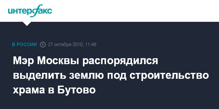 Мэр Москвы распорядился выделить землю под строительство храма в Бутово
