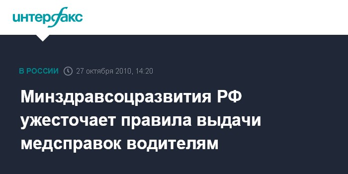 Минздравсоцразвития РФ ужесточает правила выдачи медсправок водителям