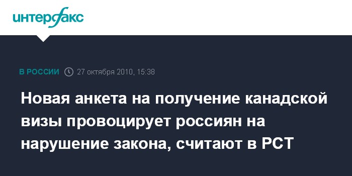 Новая анкета на получение канадской визы провоцирует россиян на нарушение закона, считают в РСТ
