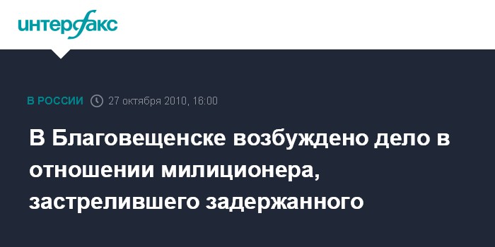 В Благовещенске возбуждено дело в отношении милиционера, застрелившего задержанного