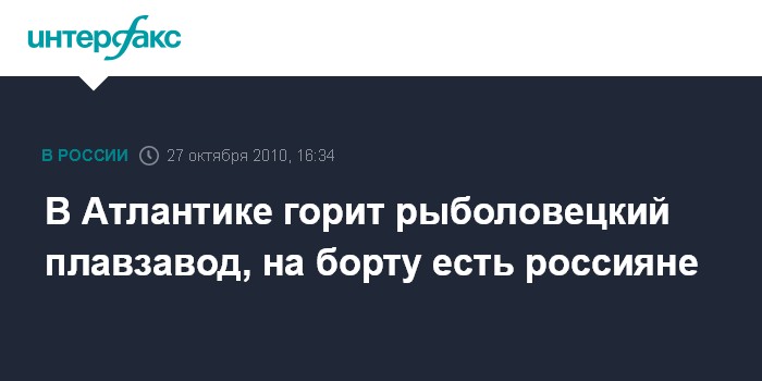 Москва. 27 октября. INTERFAX.RU - К юго-западу от берегов Великобритании произошел пожар на судне под флагом Фарерских островов, среди членов экипажа корабля - россияне.