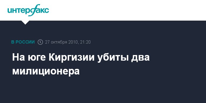 Бишкек/Ош. 27 октября. INTERFAX.RU - Убийство двух милиционеров совершено в городе Кара-Суу Ошской области на юге Киргизии вечером в среду, сообщили "Интерфаксу" источники в правоохранительных органах.