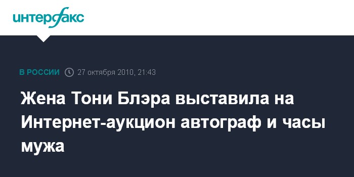 Лондон/Рим. 27 октября. INTERFAX.RU - Жена бывшего премьер-министра Великобритании Тони Блэра, Шери Блэр, продала его автограф на Интернет-аукционе всего за 10 фунтов стерлингов, сообщает в среду газета The Guardian.