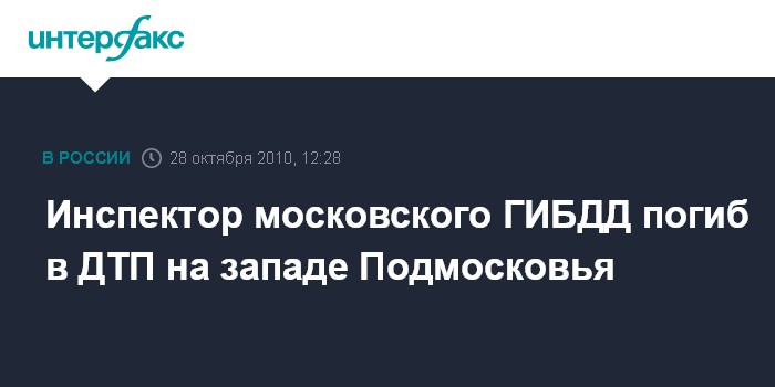 28 октября. INTERFAX.RU - Инспектор столичной ГИБДД погиб в ДТП на западе Подмосковья минувшей ночью, сообщил "Интерфаксу" источник в правоохранительных органах в четверг.
