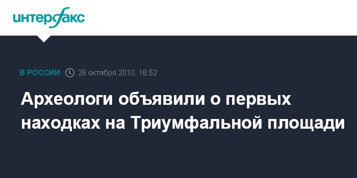 Москва. 28 октября. INTERFAX.RU - В ходе археологических раскопок на Триумфальной площади в центре Москвы обнаружены первые находки, сообщили "Интерфаксу" в пресс-службе Москомнаследия в четверг.