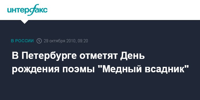В Петербурге отметят День рождения поэмы "Медный всадник"