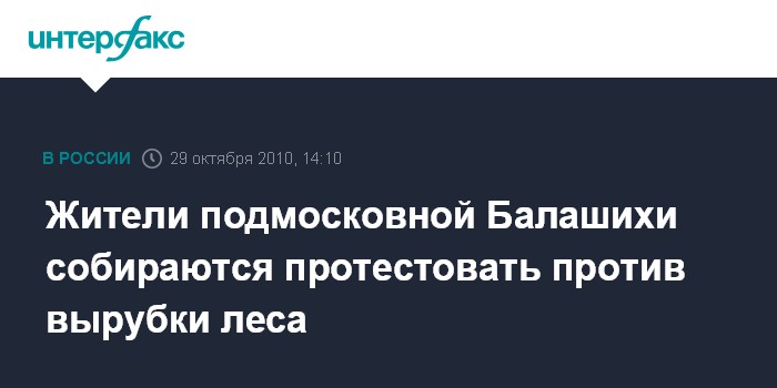Москва. 29 октября. INTERFAX.RU - Жители Балашихи проведут в воскресенье акцию против вырубки леса под строительство зданий для дивизии имени Дзержинского.