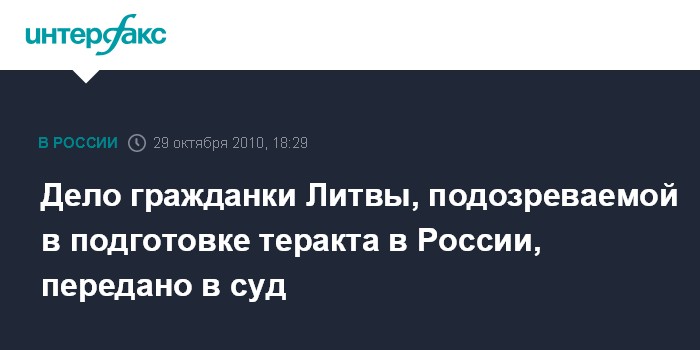 Вильнюс. 29 октября. INTERFAX.RU - Генпрокуратура Литвы в пятницу передала Вильнюсскому окружному суду дело подозреваемой в терроризме гражданки Литвы Эгле Кусайте (Egle Kusaite).