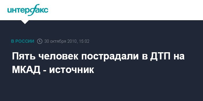Москва. 30 октября. INTERFAX.RU - По предварительной информации, пять человек получили ранения в результате серьезного ДТП на 70-м км внутренней стороны Московской кольцевой автодороги, сообщил "Интерфаксу" источник в правоохранительных органах столицы в субботу. "Информация об аварии прошла в 14:40. Количество столкнувшихся автомобилей уточняется", - сказал собеседник агентства. Он подчеркнул, что для оказания помощи пострадавшим вылетел медицинский вертолет. В настоящее время на месте ДТП работают сотрудники ГИБДД, движение в районе аварии сильно затруднено.