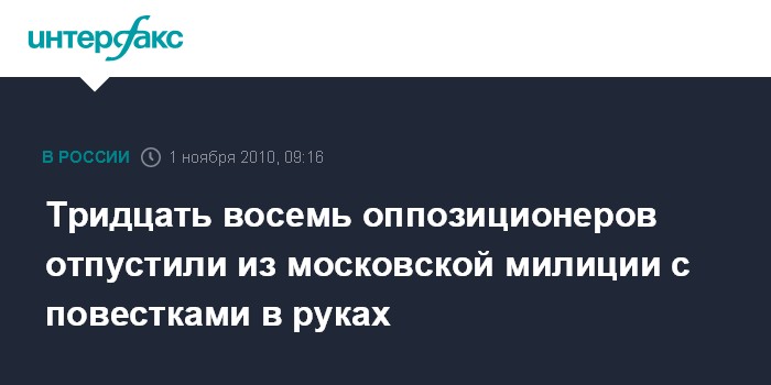 Москва. 1 ноября. INTERFAX.RU - Несколько десятков активистов оппозиции, задержанных накануне в ходе массовых акций в Москве, отпустили из милиции.
