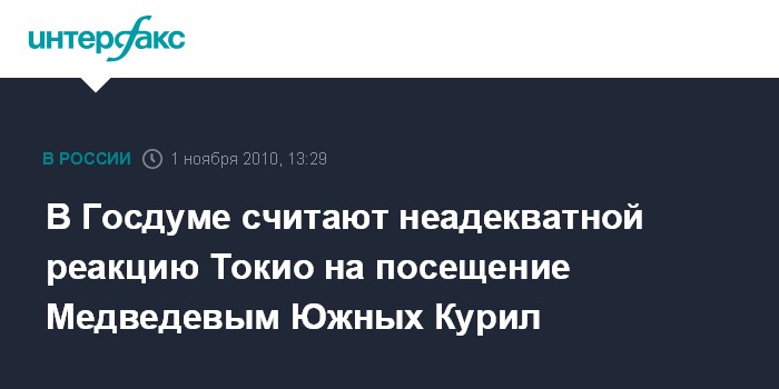 Москва. 1 ноября. INTERFAX.RU - Первый зампред комитета Госдумы по международным делам Леонид Слуцкий (фракция ЛДПР) выразил удивление реакцией властей Японии на посещение президентом Дмитрием Медведевым южных островов Курильской гряды.