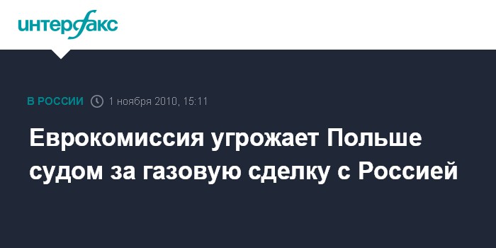Варшава. 1 ноября. INTERFAX.RU - Европейская комиссия может подать на Польшу в Европейский суд за нарушение правил разукрупнения, которые были допущены при заключении сделки между Варшавой и Москвой по поставкам российского газа в Польшу 29 октября, пишет в понедельник польская газета "Уорсоу бизнес джорнэл".