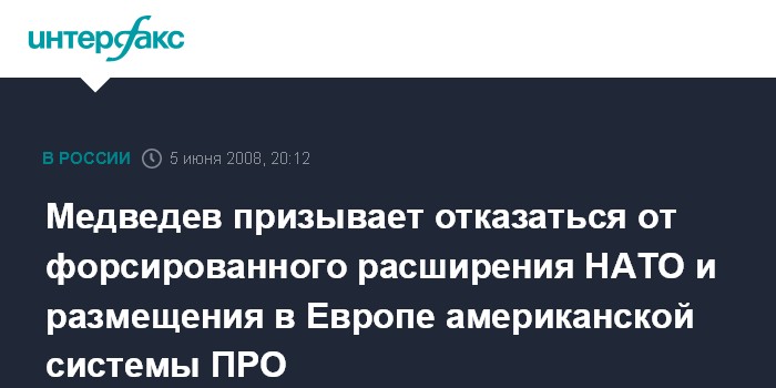 Медведев призывает отказаться от форсированного расширения НАТО и размещения в Европе американской системы ПРО