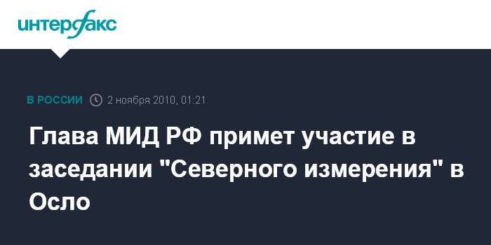 "2 ноября министр иностранных дел России С.Лавров будет находиться в Норвегии для участия в Министерской встрече "Северного измерения", которая состоится в Осло", - заявил ранее официальный представитель МИД России.