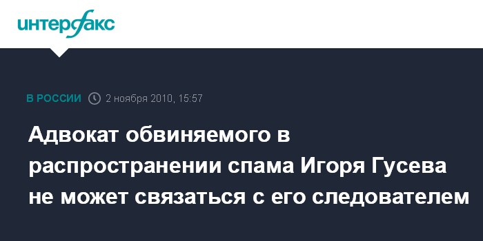 Адвокат обвиняемого в распространении спама Игоря Гусева не может связаться с его следователем