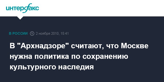 Москва. 2 ноября. INTERFAX.RU - В общественном движении "Архнадзор" надеются, что преобразования в Москомнаследия станут первым шагом на пути проведения целенаправленной городской политики по сохранению культурного наследия.