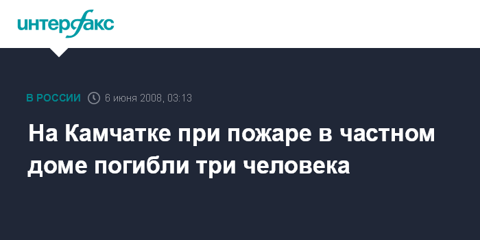 Петропавловск-Камчатский. 6 июня. ИНТЕРФАКС-ДАЛЬНИЙ ВОСТОК - В Петропавловске-Камчатском сгорел частный одноэтажный дом, на пепелище были найдены тела трех погибших человек.