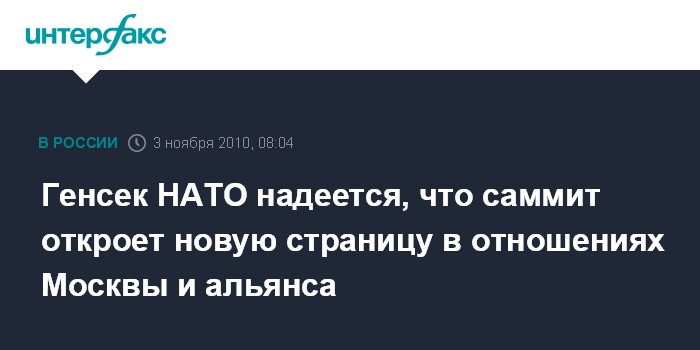 Москва. 3 ноября. INTERFAX.RU - Генсек НАТО Андерс Фог Расмуссен надеется, что саммит Россия-НАТО в Лиссабоне откроет новую страницу в отношениях Москвы и альянса.