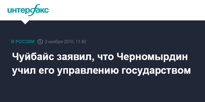 По словам Чубайса, Черномырдин учил его тому, "что такое управление государством, что такое государство российское".