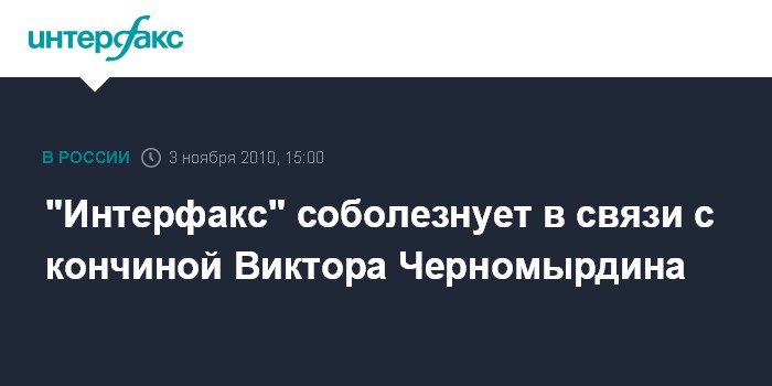 "Интерфакс" соболезнует в связи с кончиной Виктора Черномырдина