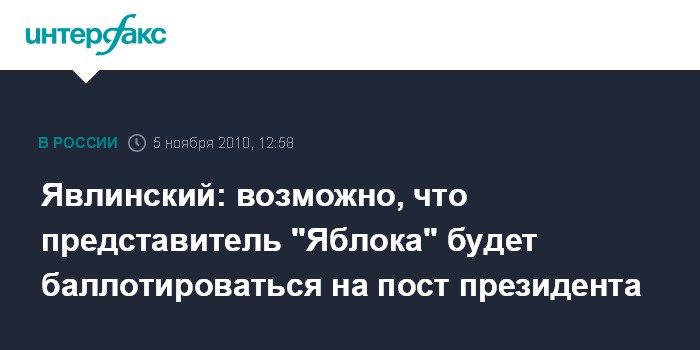 Явлинский: возможно, что представитель "Яблока" будет баллотироваться на пост президента