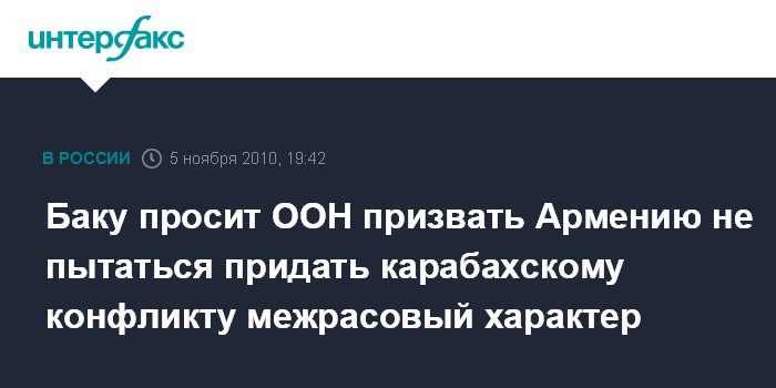 Баку просит ООН призвать Армению не пытаться придать карабахскому конфликту межрасовый характер