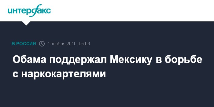 Лондон. 7 ноября. ИНТЕРФАКС - Президент США Барак Обама обратился со словами поддержки в адрес мексиканских властей, ведущих борьбу с могущественными наркокартелями, передает британская корпорация Би-би-си.