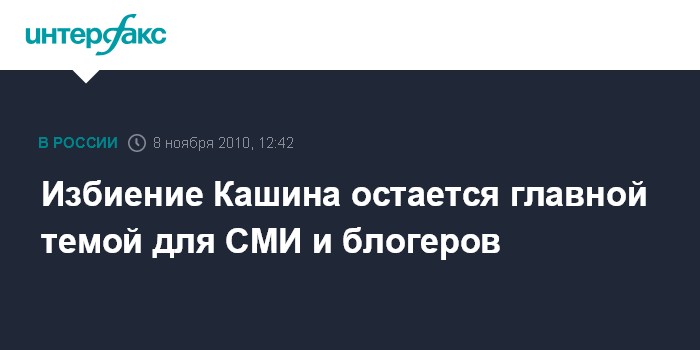 Москва. 8 ноября. INTERFAX.RU - Нападение на корреспондента ИД "Коммерасн" Олега Кашина, который был избит неизвестными у своего дома в центре Москвы в минувшие выходные, остается одной из главнх тем в российских СМИ и русскоязычной блогосфере, свидетельствуют измерения "Яндекса".