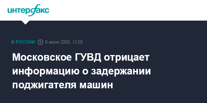 Московское ГУВД отрицает информацию о задержании поджигателя машин