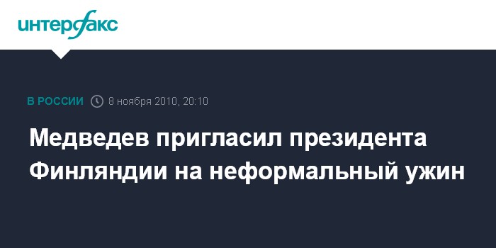 Москва. 8 ноября. INTERFAX.RU - Президент России Дмитрий Медведев провел в понедельник неформальную встречу с президентом Финляндии Тарьей Халонен, которая прибыла в Россию с государственным визитом.