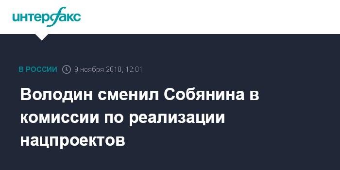 Москва. 9 ноября. INTERFAX.RU - Президент РФ Дмитрий Медведев подписал указ о включении вице-премьера - руководителя аппарата кабинета министров Вячеслава Володина в состав комиссии по реализации приоритетных национальных проектов и демографической политике.