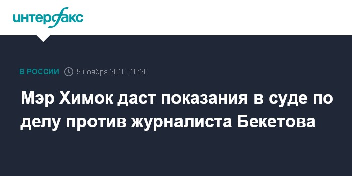 Москва. 9 ноября. INTERFAX.RU - Глава городской администрации подмосковных Химок Владимир Стрельченко прибыл на заседание суда, который рассматривает уголовное дело в отношении жестоко избитого неизвестными преступниками главного редактора "Химкинской правды" Михаила Бекетова.