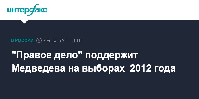 "Правое дело" поддержит Медведева на выборах 2012 года