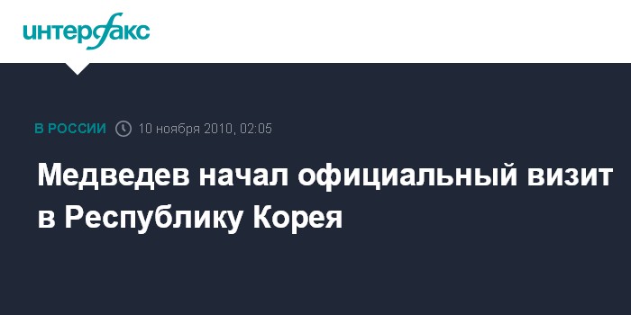Как сообщил "Интерфаксу" помощник президента РФ Сергей Приходько, визит пройдет 10-11 ноября, а 12 ноября глава российского государства примет участие в саммите "большой двадцатки" в Сеуле.