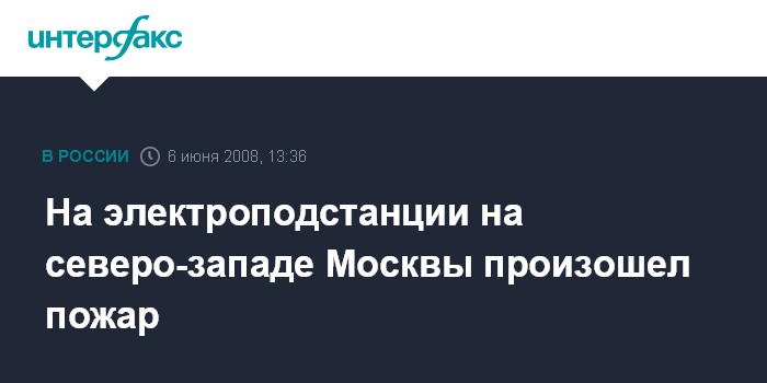 Москва. 6 июня. INTERFAX.RU - В пятницу днем на электроподстанции "Строгино N1810" на северо-западе Москвы произошел пожар, сообщил "Интерфаксу" источник в правоохранительных органах. "В 12:46 в микрорайоне Строгино по адресу ул. Кулакова, д.22, стр.2 из-за короткого замыкания взорвался один из масляных трансформаторов электроподстанции, в результате чего возник пожар площадью 5 кв. метров", - сказал собеседник агентства. По его словам, на место происшествия немедленно прибыли сотрудники противопожарной службы, которые быстро справились с огнем.
