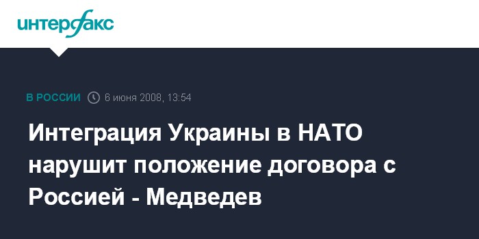 Интеграция Украины в НАТО нарушит положение договора с Россией - Медведев