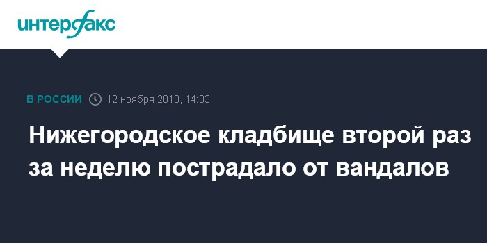 Нижний Новгород. 12 ноября. INTERFAX.RU - На Новосормовском кладбище в Нижнем Новгороде вновь совершен акт вандализма - неизвестные повредили 32 надгробия, сообщили "Интерфаксу" в городском УВД.