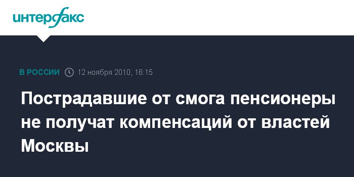 Пострадавшие от смога пенсионеры не получат компенсаций от властей Москвы