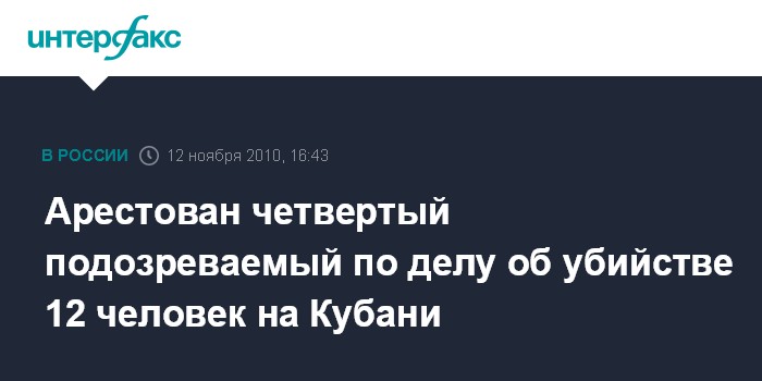 Арестован четвертый подозреваемый по делу об убийстве 12 человек на Кубани