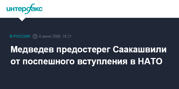 Медведев предостерег Саакашвили от поспешного вступления в НАТО