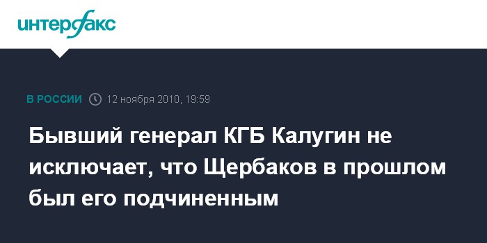 Ранее в газете "Коммерсант" появилась публикация о том, что виновником российско-американского шпионского скандала, разразившегося в июне 2010 года, стал полковник СВР по фамилии Щербаков, выдавший, по данным газеты, российских нелегалов американским спецслужбам. Комментируя эту публикацию О.Калугин, возглавлявший зарубежные разведывательные операции КГБ во времена "холодной войны", заявил "Вашингтон пост", что имя Щербакова ему знакомо.