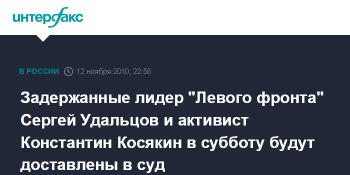 Задержанные лидер "Левого фронта" Сергей Удальцов и активист Константин Косякин в субботу будут доставлены в суд