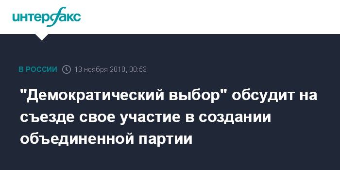 "Демократический выбор" обсудит на съезде свое участие в создании объединенной партии