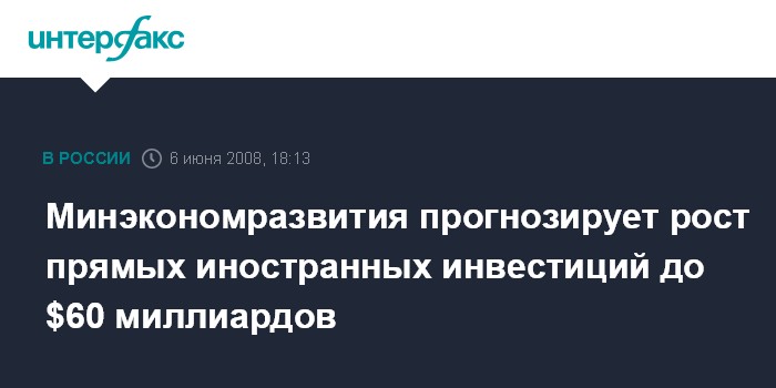 Минэкономразвития прогнозирует рост прямых иностранных инвестиций до $60 миллиардов
