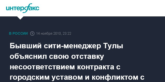 Бывший сити-менеджер Тулы объяснил свою отставку несоответствием контракта с городским уставом и конфликтом с мэром