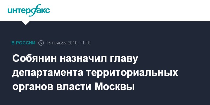 "Собянин 15 ноября подписал постановление правительства Москвы о назначении Юрия Ермолова на должность руководителя департамента территориальных органов исполнительной власти Москвы на срок полномочий мэра", - рассказал собеседник агентства.