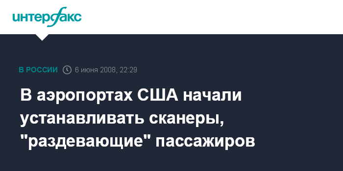 Вашингтон. 6 июня. ИНТЕРФАКС - Установка специальных сканирующих систем, способных "раздевать" человека, проходит в 10 аэропортах США, сообщило в пятницу американское Управление по безопасности на транспорте.