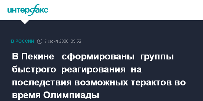 В Пекине сформированы группы быстрого реагирования на последствия возможных терактов во время Олимпиады