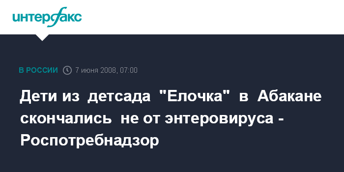 Дети из детсада "Елочка" в Абакане скончались не от энтеровируса - Роспотребнадзор